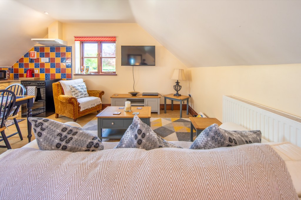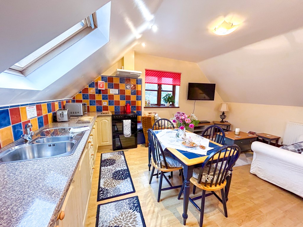 The Loft is thoughtfully designed to provide both comfort and convenience, featuring a modern kitchen equipped with everything needed for preparing meals, alongside a cosy open-plan living area perfect for relaxing after a day of exploration. With accommodation for up to four guests, the bedroom offers flexible sleeping arrangements, making it suitable for couples, families, or small groups. Guests will find all essentials provided, including bedding, towels, and an en-suite shower room.